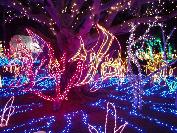 ってことで、クリスマスは右足をひきずりながら、イルミネーションを見に行った。沖縄市の東南植物楽園。夏場に来れば園内に蝶々やオウムが放し飼いになっていたらしいが、冬場は閑散としていた。「東南」という名のごとく、園内にはそれらしい雰囲気を醸し出した彫像がそこかしこに置かれ、まるで誰かが欠伸をしているときの顔にそっくりである。