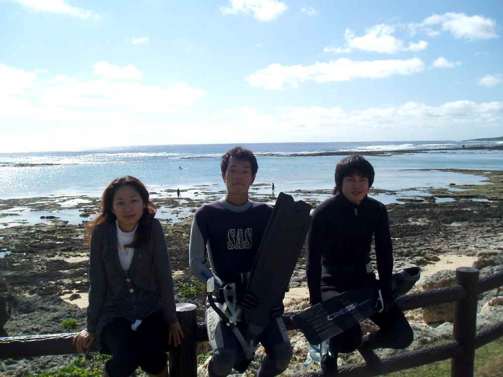 2007年1月1日、海の上から初日の出を拝むために朝6:30に伊計島へ集合した。名付けて『初日の出ダイヴ』。サークルのメンバーR氏と2人で決行した。沖縄で年越しするなら一度はやってみたかったからね。曇ってはいたが西の空は若干明るく、雲間から覘いた青空が綺麗でした。え?初日の出はどうなったかって?見られましたよ。エントリーから約10分後、厚い雲に覆われていたにもかかわらず写真1のような美しい初日の出が。写真をクリックすればもっと大きくてリアルな写真が見られますよ。