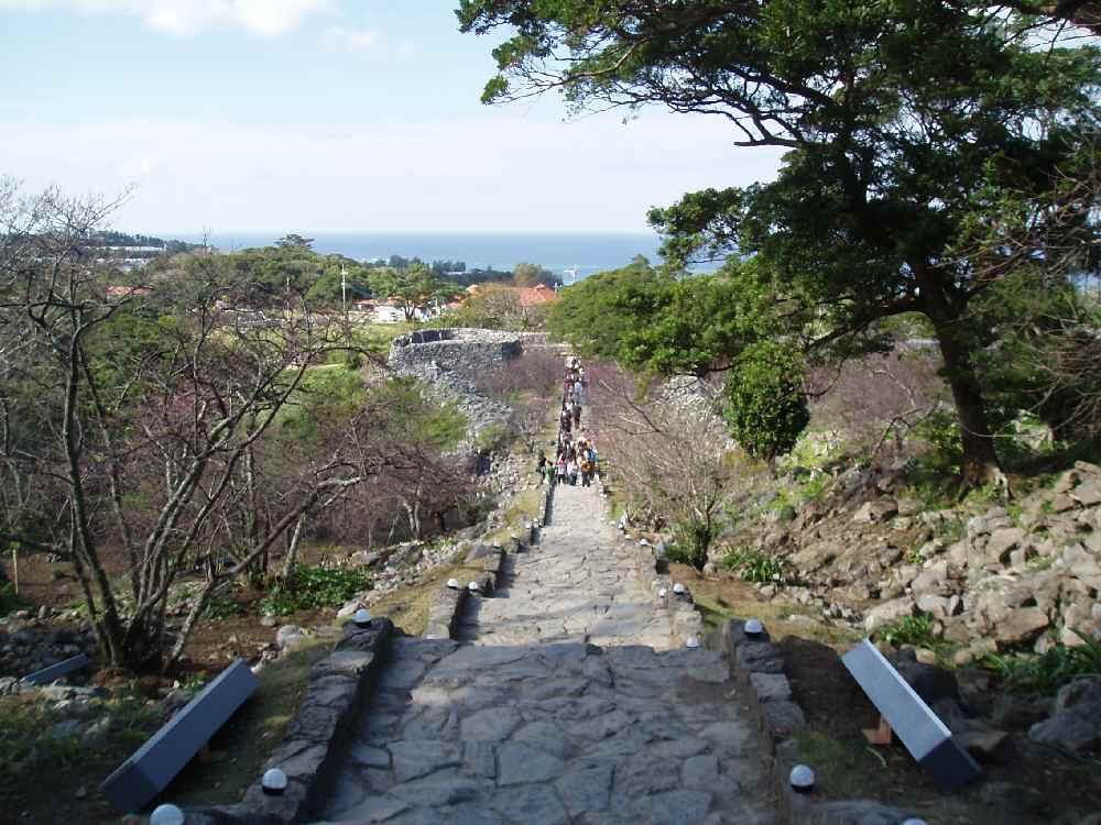 1/20(日)M女史と名護の八重岳へ花見に行って来た。去年はバイクで来たが、今年車で来たことで新たな発見もあった→沖縄の桜は枝が低く伸びてるのでジャマだ、ってことね。その後は美海水族館でオキちゃんショーやウミガメ館等、無料で見られるものだけ観て(セコイ!)、更に今帰仁城跡へ寄る。城跡ってけっこうショボイとこが多かったけど、ここはビックリするくらい混んでいた。駐車場が3箇所あったが全て満車で、路駐が続出するほど。城の石垣の上からは遠くに伊是名島と伊平屋島が見える。伊是名、暑かったなぁ。この日も暑い、タンクトップ一枚で歩く。アメリカ人のことをバカにしてばかりもいられなくなってきた俺。