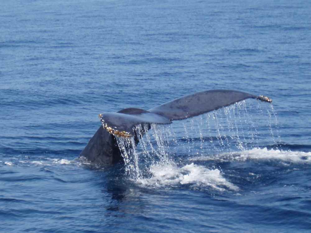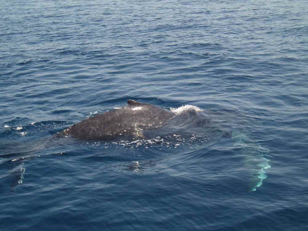 3/2(日)M女史とホエールウォッチングに行ってきた。久々に快晴、沖合いに出てもうねり・風波ともほとんどない、信じられないくらい穏やかな海況だった。本来なら潜りに直行だったんだけどね、でも海に入ろうなんて気持ちにまるっきりなれない。那覇からボートで30分足らず、ザトウクジラの母・子を2組見ることができた。・・・なんかTVとかで当たり前のように見られるから、意外に感動はなかった。クジラっぽいクジラって野生・水族館含めて見るのは初めてだったんだけどね(今まで見たクジラっていうと、オキちゃんとカモシーのシャチだけ)。でも期待以上に近くで見ることできて満足。
