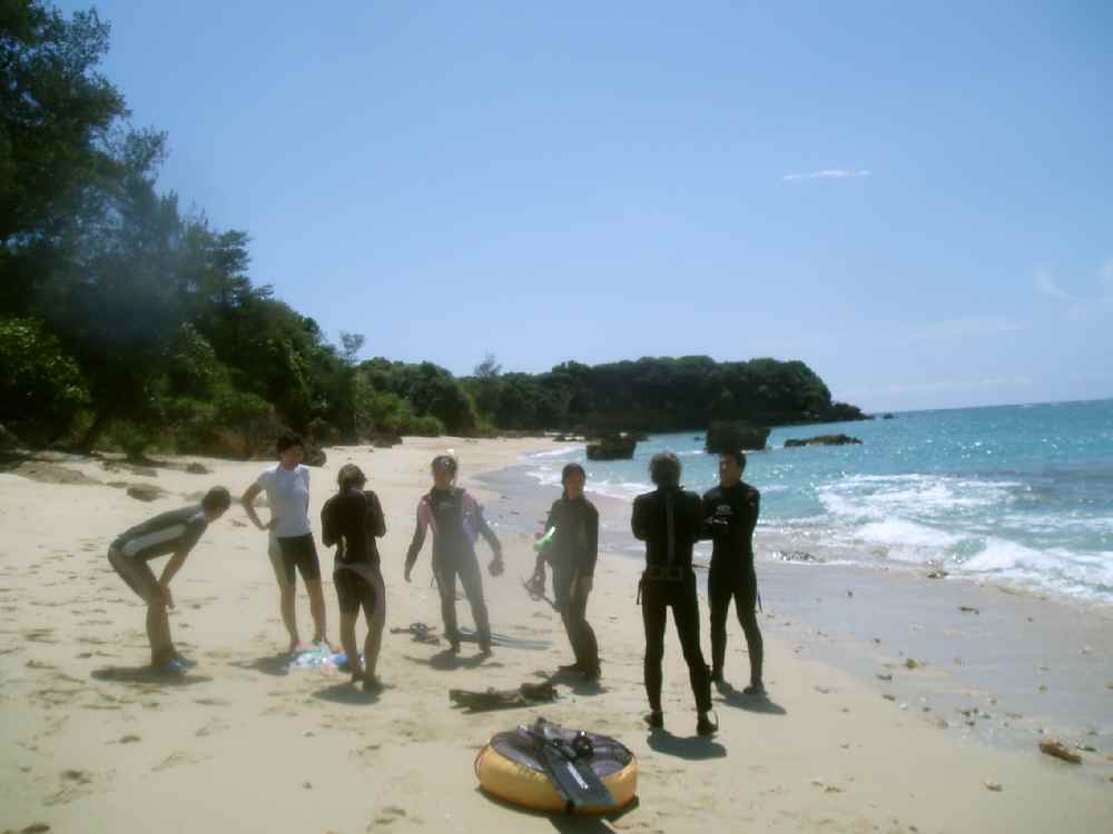 5/4(月)万座毛素潜り&オープンウォータースイム練習。サークルのゆ〜こりんとカナと一緒に遠泳大会に出る予定になってるので、恩納村営ビーチで練習。俺は今まで海で練習したことないし、プールで泳ぐほうがむしろキツいはずだからプール練習で十分と思ってたのだが。ただ遠泳用に買ったショートジョンを着てみて浮力の違いを体感できたので、やった甲斐はあった。ちなみに思い切り防護ネットの外(=遊泳禁止区域)で泳いだが、危ない危ない!漁船は通るはバナナボート引いた水上バイクは通るわ。ビーチをぐるっと廻ったとこにあるプライベートビーチに一旦上陸。すぐ上には教会があり、結婚式の真っ最中。やべぇ、海をバックに取った記念写真で、海面に俺たちのクロールしてる手が写ってたらどうしよう?おめでたいはずの写真が心霊写真になってしまい、それが原因で・・・なわきゃないか。