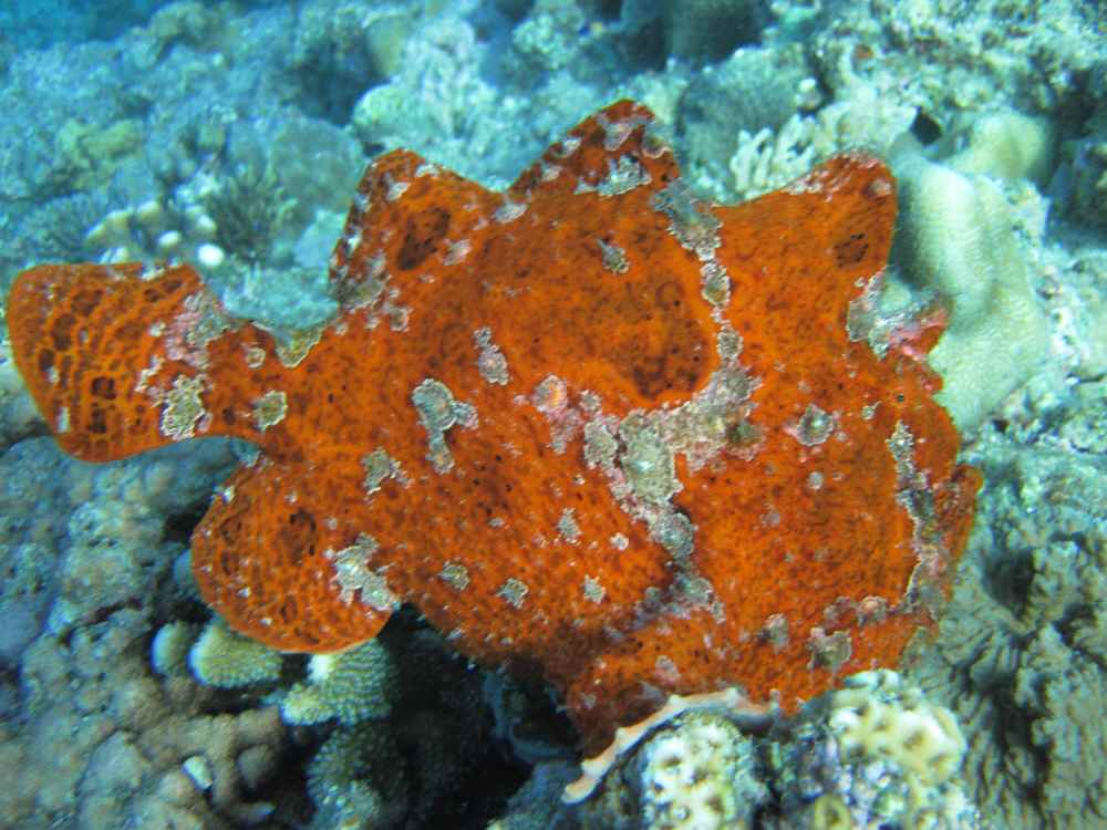 8/16(火)前述の通り会社は休み。ドルフィンスイムの練習のためにお蝶とともに真栄田岬へ。まだまだ観光シーズンまっさかり、ごった返してます。前はイヤだったけど、今はこの混雑した真栄田が好き(笑)で、入って左のほうの人が少ないとこ行って二人でアホしながら練習していたのだが・・・ここでお蝶がちょいと珍しい魚を発見。写真4のカエルアンコウです。大きさ30cmくらい、このサイズはなかなか貴重なのでは?擬態してなかなか見つけられないってのもあるけど、個体数も少ないはず。コイツやオコゼのように肉食、かつ擬態する=捕食される可能性がほとんどないような魚は、比較的数が少なくその辺にゴロゴロいるようなモンじゃないって考えるのが普通だろうし。