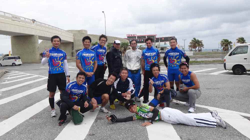 1/13(日)新春トライアスロン駅伝。今回もエルハマ氏のツテでチームKIDSのAチームへ入れさせていただきました(いつもありがとうございます)。この日の沖縄は大雨洪水雷波浪注意報が出ている状態(汗)車で向ってて時間ギリだったので焦っていたが、到着してみるとほとんど人がいない。「なんだ、中止か」って思ったけどボチボチと集まってきて普通に開催された。人数も少ないので1人2区間。俺は2区・8区担当。もちろん最初から最後まで全力疾走。キツイ。風が強いのでさらにキツイ。今回は天候の悪さが原因か参加チームが少なく、全8チーム。自分が参加したキッズAは5位だったが、キッズBは3位と上位。一人で3回走った人がいたり(おっと)、チャリ自走で来た人もいたりと、さすがツワモノ揃いです。ちなみにこの日の風は台風並、しかも来るときは向かい風。マジアリエヘンで。俺自身はというとタイムは2回とも7分37秒。2年前に出たときより僅かに遅いが、2回目に落ちなかったのはマズマズか。アップの段階でかなり痛かった左足も走り出したらアドレナリン効果か(これくらいで出るか??)ほとんど違和感なし。お久しぶりな方ともお話できたし、やっぱコレは楽しいですね。最後の沖縄そば争奪ジャンケン大会(違う)も大いに盛り上がった。