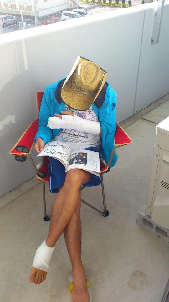沖縄の冬にしてはめずらしく雨が少なく、気持ちいい快晴の日々が続く。が、俺は左手・左足をふさがれてチャリにも乗れん。体力回復期間と割り切ってインドアな活動にふける。手術から一週間後、傷の様子を見るために病院へ。手のほうは綺麗に塞がりつつあるようだが、足のほうが予想より傷の回復が遅いと。まぁだいぶ歩くのラクになってきたけど。土曜日には、手術受けた病院の天下り先の病院(違う)へ行って診てもらう。病院っていうかジム(笑)次は先生の都合により2/17(日)に来てくれってことなので沖縄マラソンもDNS確定。前日の土曜日に抜糸して翌日走るつもりだったのに。が、あと一週間で抜糸してギプスも外れるとはいえ、すぐに走れるんかいな?甚だ不安になる。