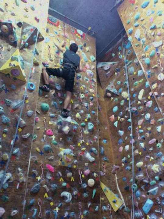 俺含め初心者が何名かいたので、一から丁寧に教えていただき、とりあえず上ってみる。なんだ、カンタンじゃん・・・って思ったが、それはただ単に登る場合の話。色々やってみたが、見た目以上に難しい。バディにロープで支えてもらうクライミングと、ロープを使わないボルダリングに挑戦。翌日は当然腕が筋肉痛。しかも右腕の筋肉痛のほうが酷いってのがイケてない。やっぱし右手だけに力が入ってしまっているのだ。左右差出まくり。しかも体幹をあまり使えてない。。。orz まだまだ、猿には程遠い。