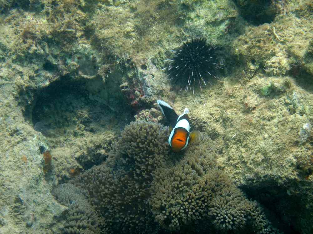 翌朝の飯はバイキングを当然腹が苦しくなるまで食べて、すぐにビーチへ。かつてOWSに出場したとこです。ちゃんと送迎してくれます。でもシュノーケルは使用禁止。でも天気予報が外れて一気に夏の日差し!でも泳げるのは当然ネット内。でもナントそのネット内でトウアカクマノミを発見(祝・クマノミシリーズコンプリート!)。こいつを見られただけでも、ビーチに出向いた価値があるってもんである。更にホテルに戻っても一度屋外プール。小さな子供連れもかなり多かった。そういやまともにリゾートホテル停まるなんてのも初めてだったのでは(少なくとも沖縄来てからは)。本島内の、ヤンバルなどではなく普段通りかかるようなエリアで2泊3日、今更かと思いきや、いろいろな「初」があって、まだまだ未知の領域がありそうである。