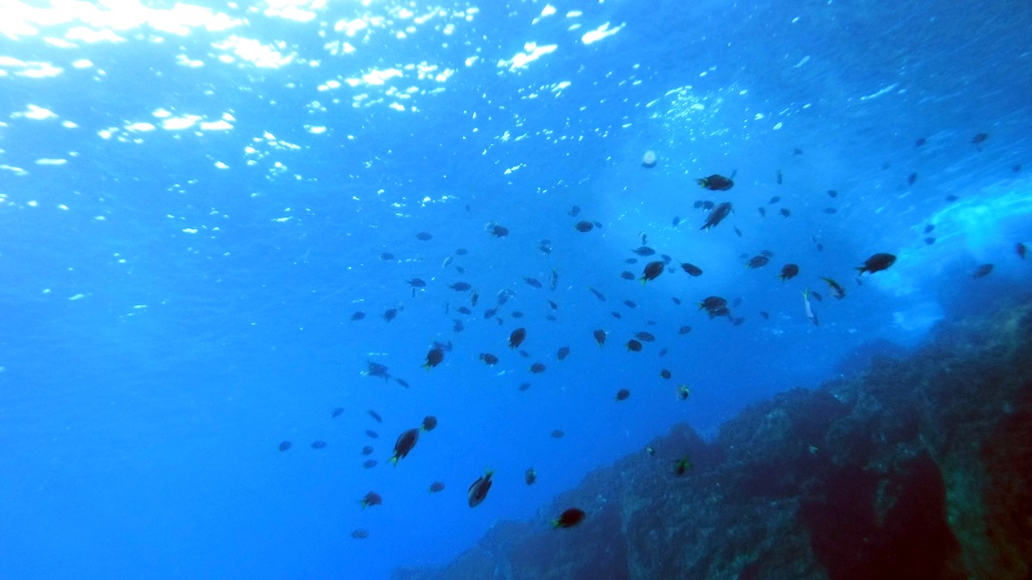 11/4(土)11月だってのに全国でも気温25℃超えが続出。八丈島も暖かかったので海へ。しかしこの日は気温以上に海況がスンバラしかった。数日間、風が収まっており、海は鏡面仕上げのような凪。海面に反射する太陽光がまぶしくて直視できないほど。そんなわけでナズマドでも今までより沖合まで出てみました。波に揺られないため身体への負担も小さいのか、耳抜きもスパスパできたような。・・・フィンキックは右足首痛には良くなかったようだが。