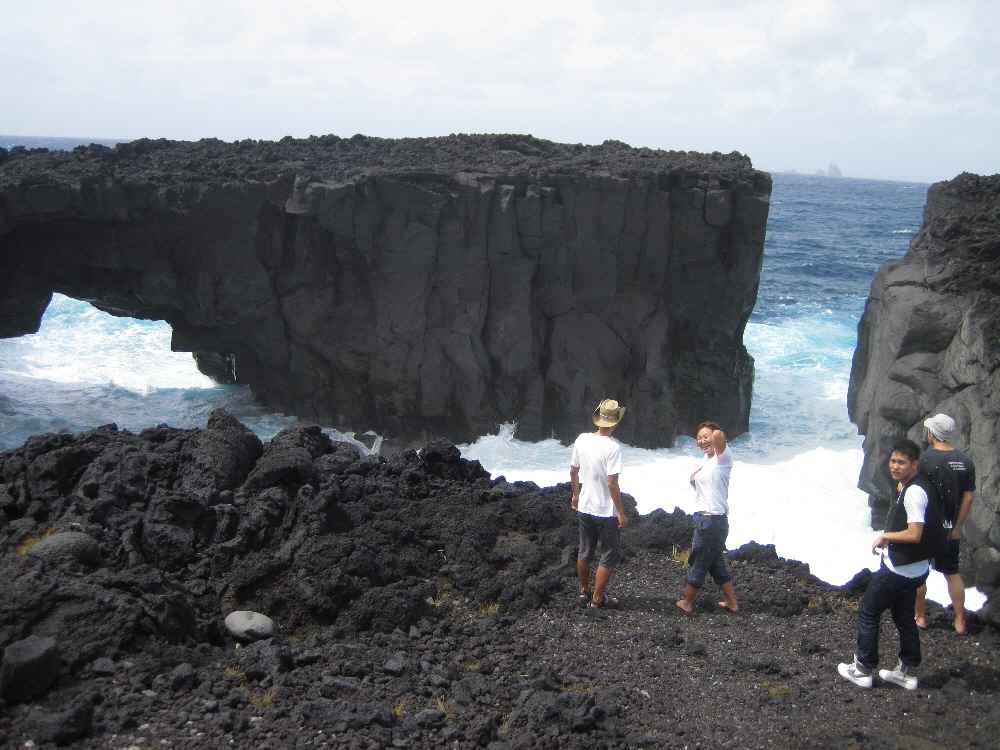 海岸の砂は真っ黒。火山でできた玄武岩が砕けて、波に揉まれて丸くなったものだ。「砂」ではないため、海が濁ることがほとんどなく、透明度は抜群だとか。ヘリポートまでの集落を歩いてみる。静かだ。車の音など全くしない。しかしこんなところでさえ、発電所がある。今話題沸騰・今年のブレイク企業(笑)東京電力の火力発電所だ。やはり人が住む以上は、こういうものが必要になってくるのか。