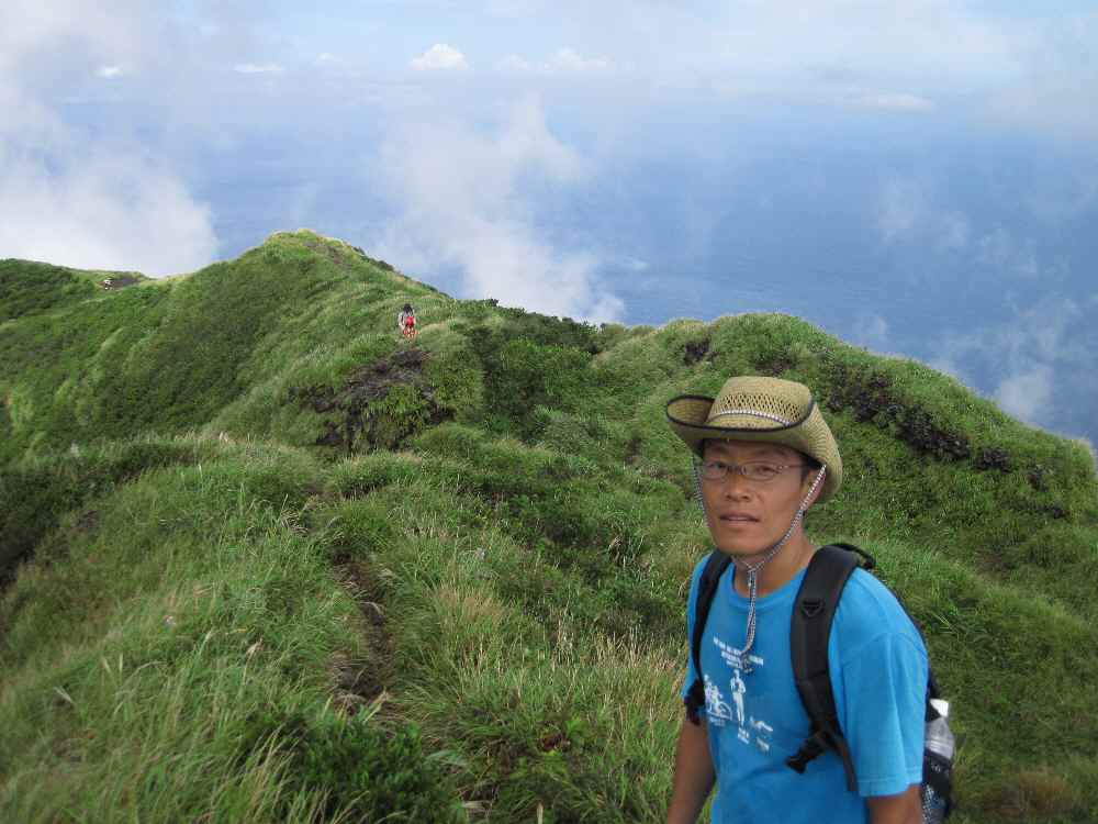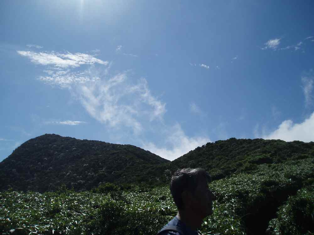 火口の周回道は、出始めこそしっかりしていたが、そのうち獣道になりどこがどこだか分からなくなってくる。草が深く背の低い木を掻き分けて進む必要があったり、ぬかるんでる場所も多く、道ではなく草や岩の上を歩くほうがマシだったり。で、進むのが困難になってきたので、ある程度の高みまで行ったところで諦めて引き返しました(笑)で、お鉢に到着したポイントまで戻ってお弁当。う〜ん、美味い!単にスーパーで買ったオニギリだけど、遠足やピクニックで食べると10割増しだから(笑)