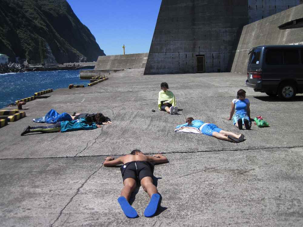 寒いかと心配していたが、どうってことはなかった。黒潮がまともにぶつかってるおかげか、水温は体感的には沖縄と大差ない。一本上がったら次入るの嫌になるんじゃないかと思ってたが、テンション上がってたのも手伝ってか、寒さは忘れてた。むしろ終わって港まで引き返すときが寒かったか。波しぶき被りながら風切って走るわけだから。