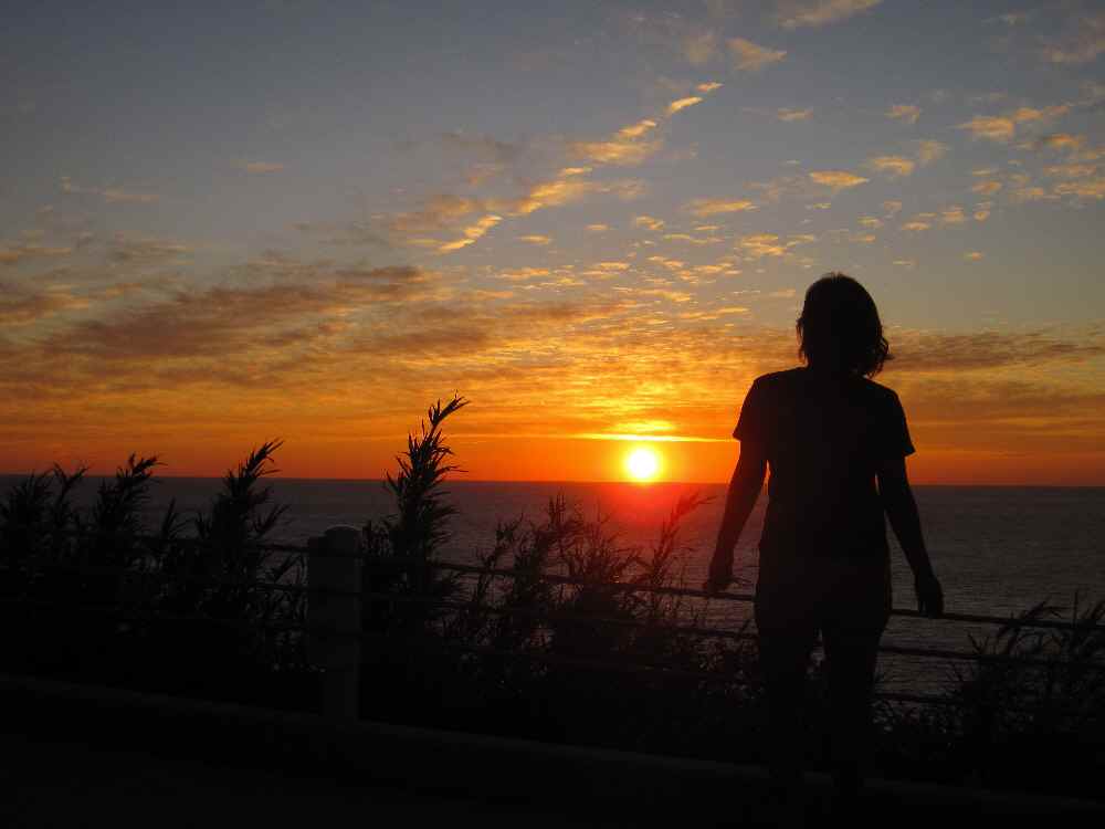 到着したのは太陽が水平線の陰に隠れた直後・・・手前の岩場の黒・夕闇の深いオレンジ・ぼやっとした小島のシルエットの3段階コントラスト。じっと眺めていると、何やら不思議な感覚にとらわれました。この世はウソか幻か・・・?みたいな。
