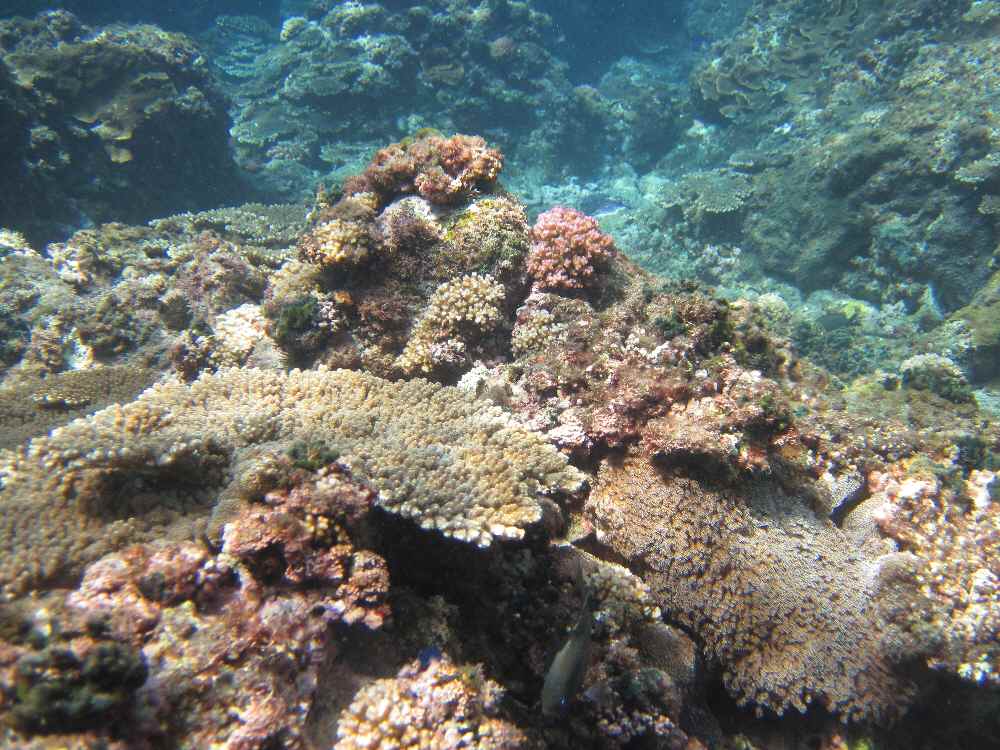 朝方潜った後に洗ったフィンとウェットを使いたくないので、海パン&マスクのみのOWS。なんか無駄な力が抜けたのか、トレーニング欲が溜まっていたのか知らんが、ぐいぐい泳げた。このビーチは桟橋と沖合いのテトラポットに囲まれた湾内なのだが・・・隙間なく生えているサンゴ、抜群の透明度。沖縄にもサンゴはあるが、こちらは全く踏み荒らされていない。首都圏に住んでるならわざわざ沖縄へ行く必要ないやん。水温も温かい。なんたって俺が海パン一丁で入っていられるのだから。黒潮がぶち当たってる影響か。熱帯魚系(チョウチョウウオ、スズメダイ、ブダイ、ハギetc)のカラフルさはないが、十分でっしゃろ。あ、バカでかいダツがいる。あ、カンパチの若魚がいる。この魚は小さいうちから単独行動なんやね。