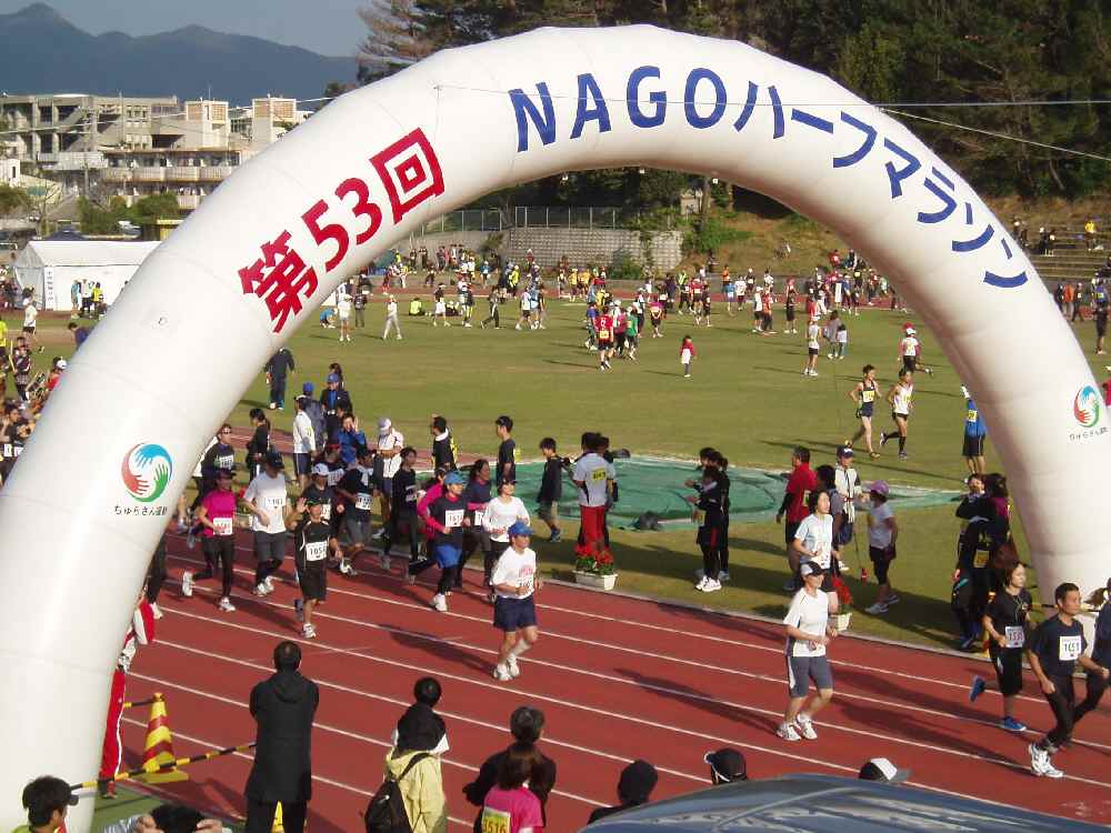 昨年末から調子良く走れており、今大会には期待していたのだが・・・数日前から風邪気味で鼻水や咳が出まくってる状態。当日朝も鼻は詰まるわ熱っぽいわで、高速で名護へ向う最中にはもうDNSで良いかと思ってた。参加Tシャツもらって応援して帰ろうかと。でも、会場到着して着替えたりトイレ行ったりして身体動かしてたらラクになってきた。なんとかイケるかな。
