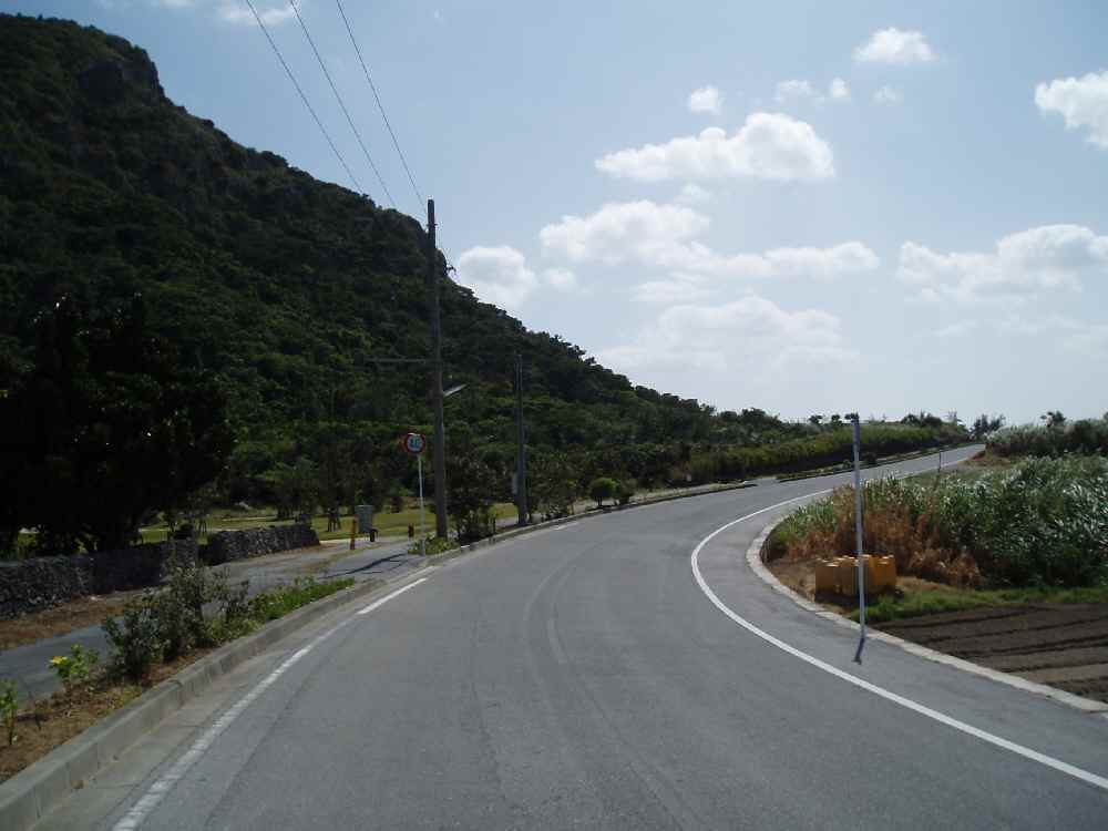 港の前の直線道路を爆走、仲田地区を抜けて伊是名城跡を通過。ここから少し山道っぽくなる。