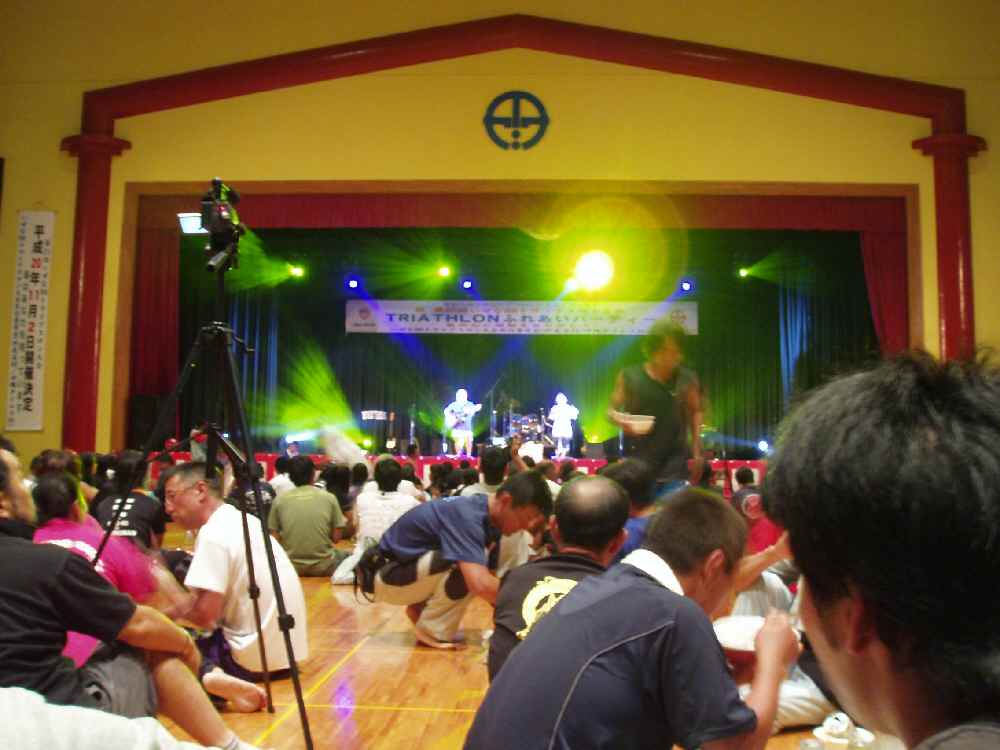 やっとビールにありついて乾杯!!しかし予想通り、ゴール後にアホなほどコーラを飲みまくりしてしまったため、俺はビールも飯もほとんど喉を通らず。ビールをほんの一口飲んで、ジューシーを茶碗に1杯食べて、あとはバナナやミカンを食べていた。それに「戻した」ときに喉を傷めたとでも言うのだろうか、胃?食道?のあたりが痛いし。んなわけでまた腹が苦しくなってしまったのでIWAI氏を残して一足先に公民館へ戻り、横になる。