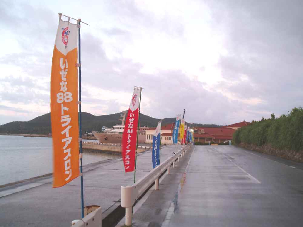 ◆ことの始まり◆正直なところ、今年は出ようという気になれなかった。精神的に病んだ状態で練習もやったりやらなかったり。しかも直前の1ヶ月は特にランの練習なんてしてないようなもんだった。初出場したときの地獄の苦しみを思えば、無理にきまってる。昨年の大会で友達になったIWAI氏が「出る」と言わなかったら、俺は申し込みすらしてなかっただろう。今までなら申し込みしてしまったが最後、嫌でも練習したのだが、今年は違う。直近まで「やっぱやめようか、見学だけしに行けばいいかな」と思ってた。それこそ、出発する3日前まで。気持ちが大会に向いてきたのは大会の前週の木曜日、このときになってやっと旅支度を開始する。 今年で3年連続のIZENA88 TRIATHLON。そろそろマンネリぎみになってくる頃かと思いきや、過去2回とはだいぶ趣の違うものとなりました。。。 ◆1日目:島へ渡る日◆