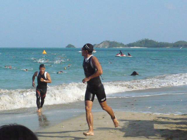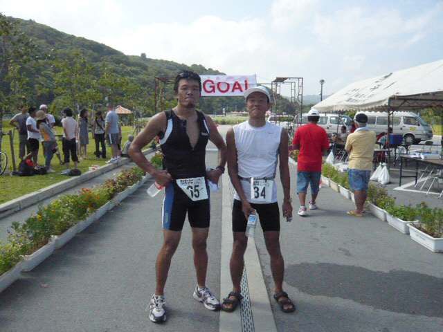 あやはし〜伊是名までしばらく時間があるので、その間に何かレースを・・・と思って探していたところ、面白そうな大会を見つけたのでエントリーしました。毎週末、一人で黙々と練習してるのもシンドいし、たまには楽しみましょうってことで。ちょうど素潜りサークルの仲間のハマちゃんが「俺もトライアスロンやりてぇ」と言ってたので、デビューレースにと誘って一緒に出ることになりました。 <SWIM> 375m × 2周 = 750m