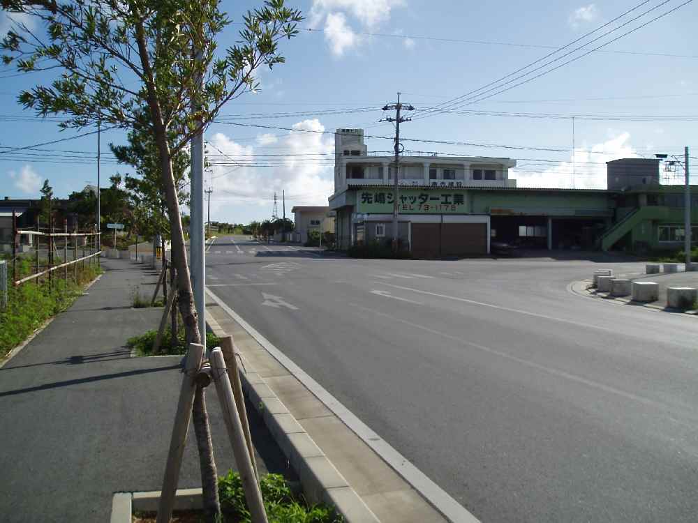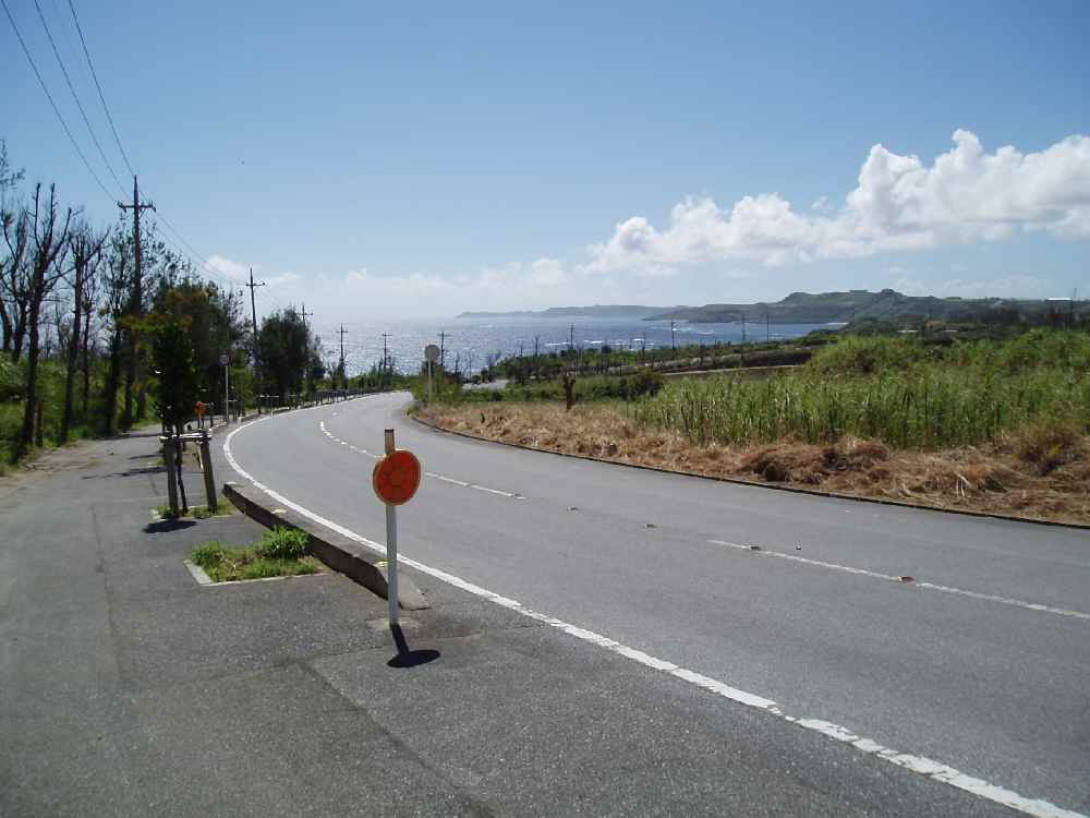 <写真7>平良漁港を過ぎた先、右折するポイント。手前は少しだけ上り坂。