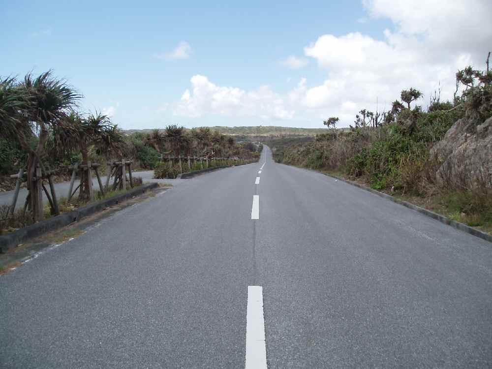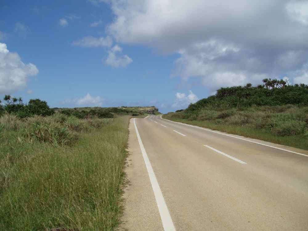 <写真9>東海岸沿いに南下、島の東南端の東平安名崎を目指す。ここは向かい風&up/downで消耗する。