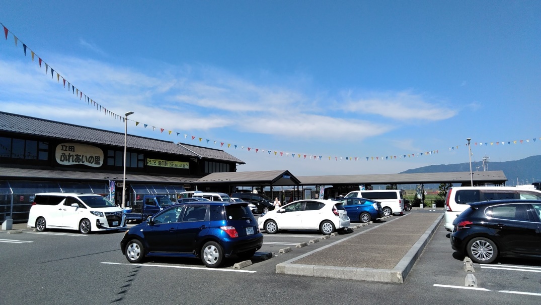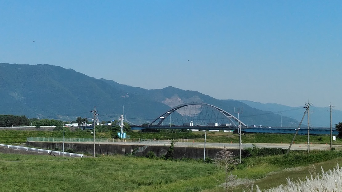 <写真16>道の駅「立田・ふれあいの里」へ寄り道。 シューズが履けるくらいに乾いたとこで、8:30過ぎにホテル出発。立田大橋の交差点はやはり渋滞。仕方ないので写真撮って待つ。通りすがりに道の駅「立田」へ寄る。朝飯食べようかと思ったが、まだ9:00前、たこ焼き屋をのぞいたがやってない。ありつけた食事はフランクフルト1本のみ。その先を左折して国道へ。しばらく北上して、再度左折。国道を外れると、のどかな田舎道。時間あればちょっと寄り道していきたかったところ。北上して東海大橋を渡り、初日にも通った土手上の県道23へ。周囲のトラック等とともに、白いホンダS800のあとをついてバンバン飛ばす。ほんと眺めが最高だが、よそ見ができない道路。再度、長良川を渡ってちょっと走ると、岐阜羽島駅。レンタカー返却、ちょうどよい時間。 <リザルト>