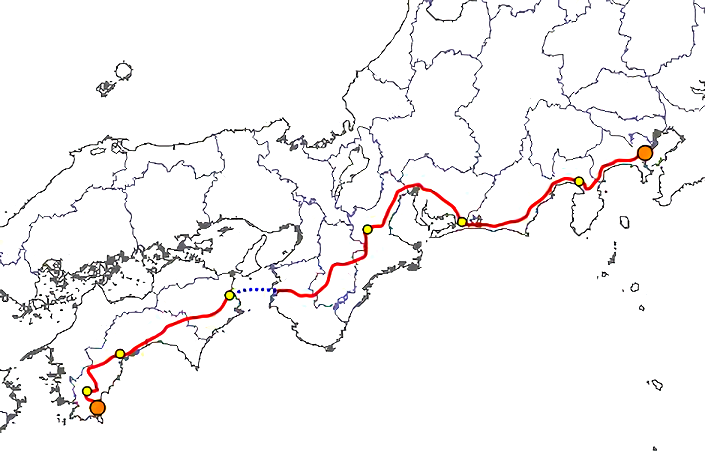 | ◆行程 | : | 横浜市神奈川区三ツ沢上町 → 高知県中村市(四万十川河口とまろっと) |