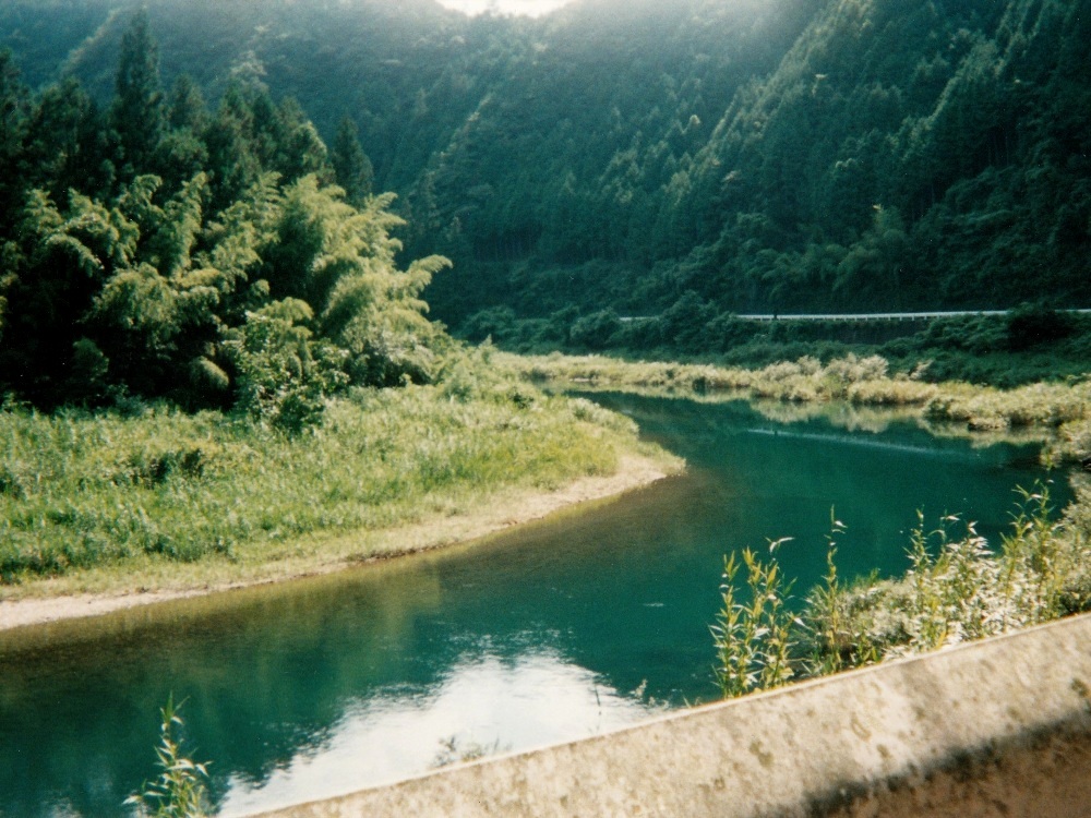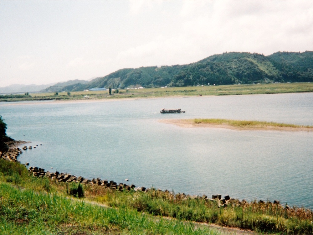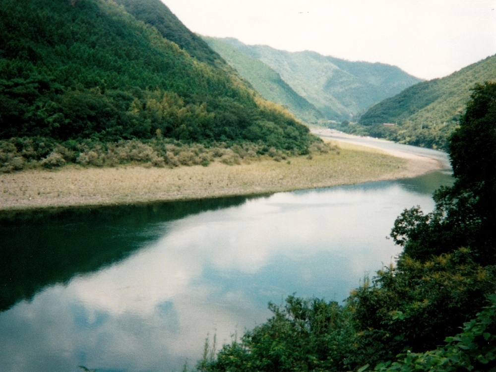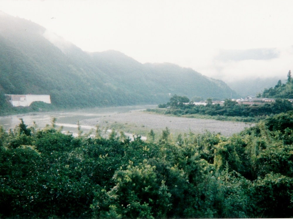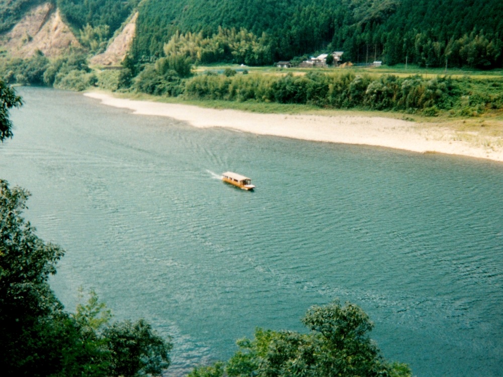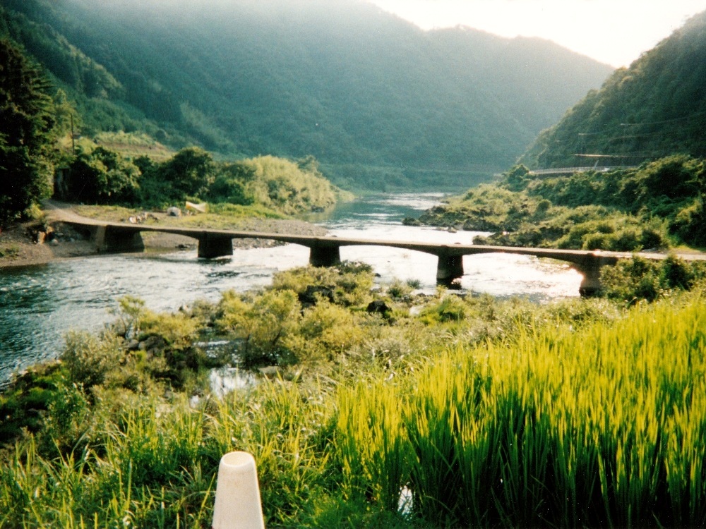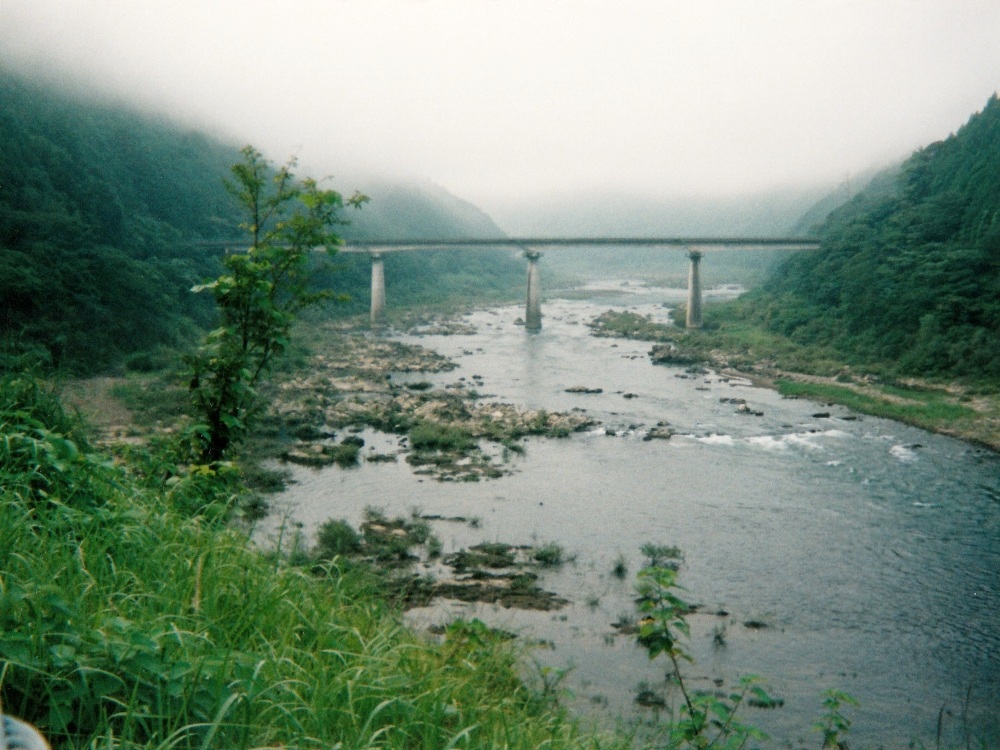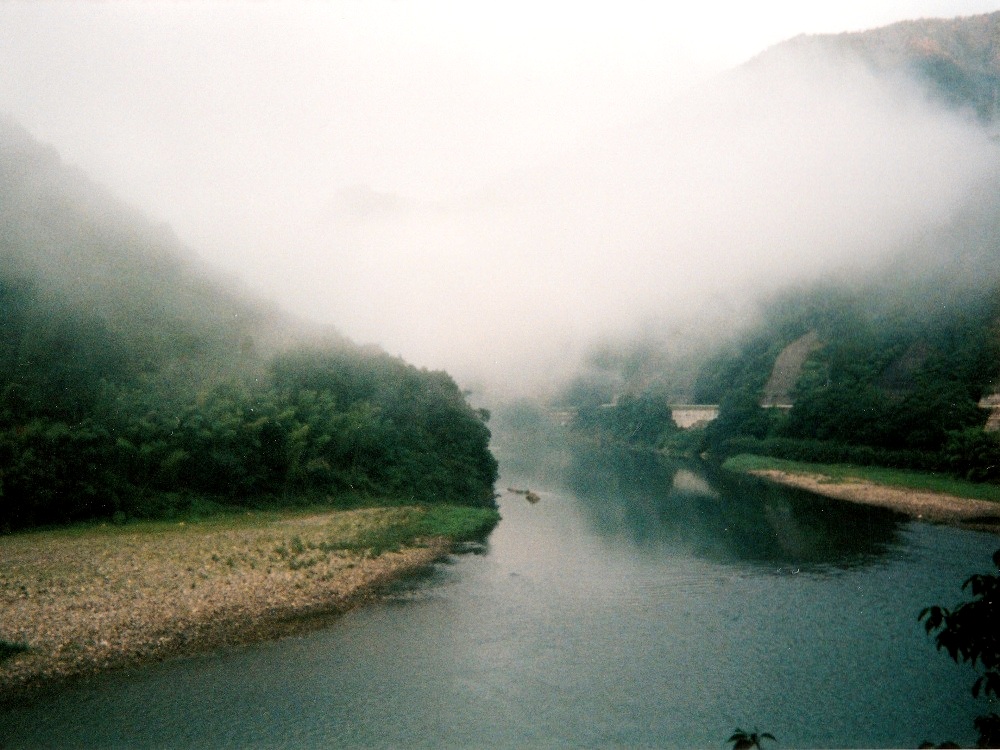 朝靄の中を走り出す。 川を左手に見ながら進む。7:30、道路沿いにある食堂に入ってやっとまともな朝飯にありついた。 こんな早い時間からやってるなんてGOOD。店内にはツーリングの客が数人。飯食べながらTVのニュース見てると、 何と沼津で電車の正面衝突事故があったと。こんな遠くまで来て地元の話を耳にするなんて、なんか不思議な気分だった。 川幅はどんどん広くなっていく。こうなると普通なら水が汚れてくるのだが、この川は違う。若干濁ってはきているが、まだまだキレイなままなのだ。 屋形船が目に着きはじめる。竹林や杉林の向こうに川が見えるのもなかなか。沈下橋が相変わらず多いが、通行止めになっているものも多かった。 河川敷が広くなってきた。こうなると川が道路から遠く離れてしまい、よく見えなくなってしまった。 R441は国道とは思えないほど道幅が狭くなっている場所が度々ある。車がすれ違うのがやっとの場所も。そんなとこで大型トラックが居ようものなら 大渋滞!道路っ端で写真を撮っていたら背後に何か動くものの気配。渋滞で停まっていた車から女の子が2人こっちに手を振っていた。 手振り返したら恥ずかしそうに隠れてしまった。