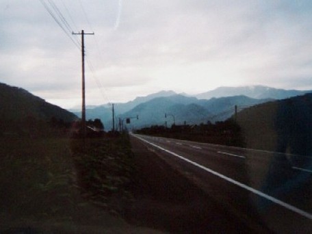 ・・・拍子抜けするくらい楽勝だった。昨日の連続山越えのほうがベラボーにキツかった(笑)地図で見て道のりが長いので不安だったけど、その分傾斜は緩いってわけか。峠付近は、話で聞いていた通り濃い霧に包まれていた。峠の日勝トンネルを抜けた先は更に濃霧。標高が高く、霧で体が濡れ、更に下りに入ったことで体が熱くならない&スピードが出るため、さすがに寒くなって合羽を着るが、それでも寒い。真夏なのにガタガタ震えながら、十勝清水側へ下り切る。とりあえず寒いので路肩にあった売店?でホットコーヒーを買って体を温める。更に直進し、R38に突き当たる。すぐ左手にローソンがあったので2度目の朝飯、グラタンなどを買う。駐車場にテーブルがあったので座って食べる。ツーリングライダー2名と相席、横浜から自走で来たことを話したらエラく驚かれた。