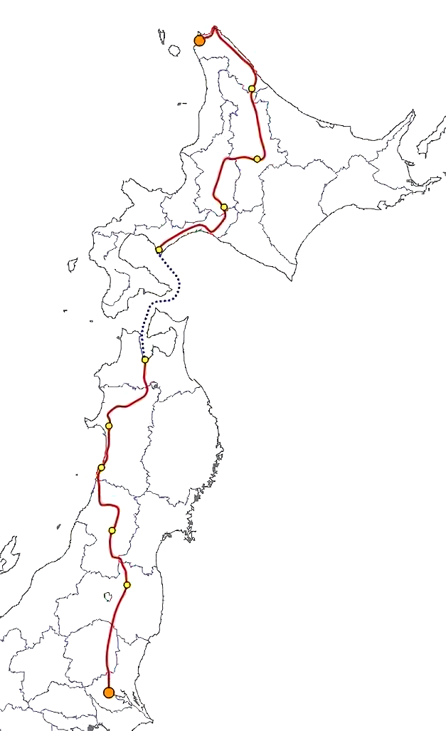 | ◆行程 | : | 茨城県つくば市(大学宿舎) → 北海道稚内市 宗谷岬 |