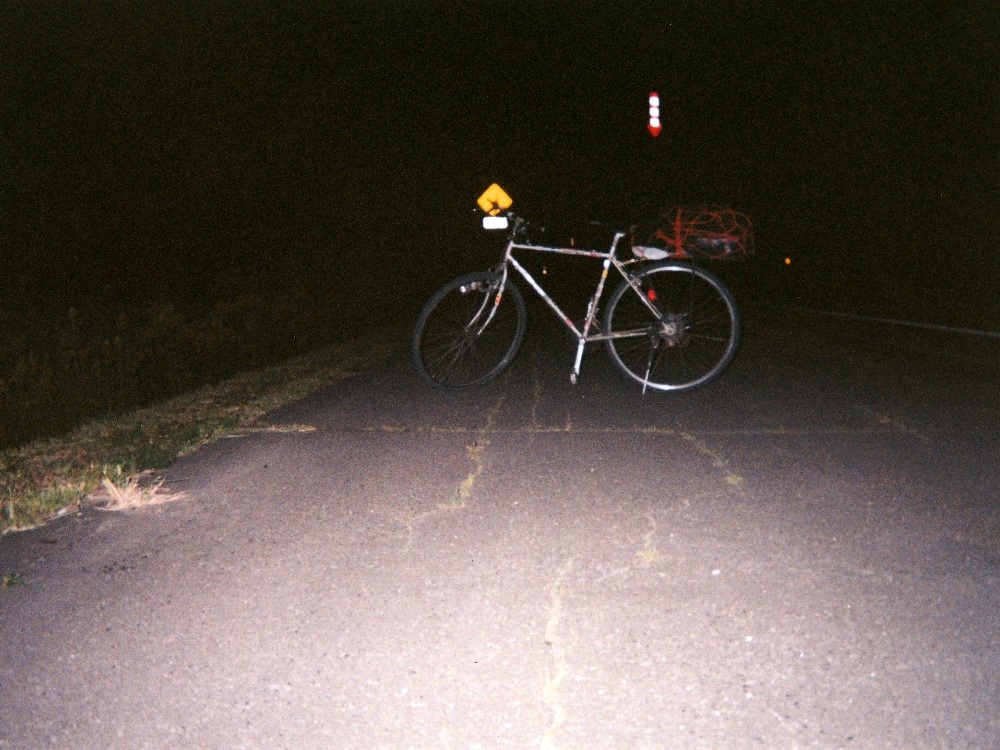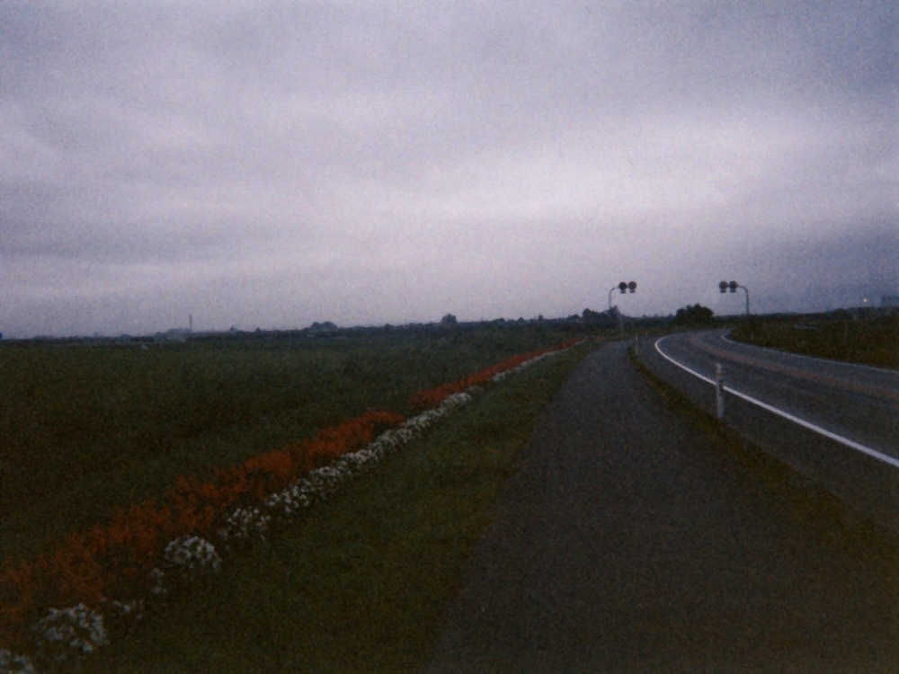 人生最後の夏休みの、最後の日。こんなふうに迎えることになるとは夢にも思わなかった。 セブンイレブンを出発、苫小牧の市街地に入った頃から急激に睡魔が襲ってきた。早く休めるとこまで進んで休もう。ルートは千歳方面へ。R36を進む。左折して線路を跨ぎ、すぐ右折。いや〜歩道がだだっ広いっていいね〜。所々コンビにもあるから補給にも困らないし、怖くないし。この分なら千歳まで余裕っぽいね。 次第に暗くなる。灯りがなくなってきたが、快調!少し寒気も来たから、サッサと進んでしまおう。道の駅「三笠」あたりがいいかな。ジャンジャン進んで・・・あれ?行き止まりだ?頭上には高速が走っているが、地図と照合してもなんかよくわからんし。そういえば途中からR36の標識をみなくなっていたな。いったいどこで道間違えたんだろ?周囲には民家もなく、通る車もいない。要するに・・・迷った。 真っ暗闇で道に迷う恐怖+寒さ。高速に入らないように右手に道を進んで行くと、また行き止まりに。いったいどうすれば・・・。と、少し離れたところに信号機が見えた。そして道路標識っぽいものも見える。あそこまで行けば現在地を把握できるだろう。この辺りは区画整理が進められている住宅街のようだ。テキトーに進んで信号機のある道路まで出てみると、それがR36だった。ふぅ、一安心。見えていた信号機の交差点を渡るとき、黄色いインテRがクラクションを鳴らしたが・・・俺への応援の合図だったのだろうか? その後はまた順調に進む。が、歩道が右サイドだけになったり、広かった歩道が次第に狭くなったりと、なかなか苦しい。日中ならともかく、今は暗闇・寒さ・眠気のトリプルパンチだかんね。 千歳空港まで約20km、だんだん周囲からは灯りがなくなり・・・ついに真っ暗になった!さすがに怖い。明るければ原野の広がる綺麗な風景なんだろうけどさ。小さな川をときどき渡るが、川の名前がカタカナだったりして北海道っぽくなってきた。 バス停の自販機の前で休憩。ここでもホットコーヒーを飲みました。それだけ寒かった。その辺りから鹿など何か動物でも飛び出してこないかと、ちょっと期待してみたりも。 さて、マジ寒くなってきた&眠気もますます強まってきた。空港まで20kmが長い!いつまでたっても千歳の街灯りが見えてこない。ホント長い。道路脇にずっとフェンスが続いている。その向こうにたくさんの灯りが。やっと新千歳空港だ。屋内歩道橋のようなものがあったので、その中で休んでしまおうかとも思ったが、せめて千歳駅までと最後の粘り。更に走る。が、限界が近いな。 久々に信号機が見えてきた。やっとこ市街地に入るようだ。いきなり建物が増えて、まもなく千歳駅前に到着。駅前のちょっとした公園には交番あり、サンクス(スパーだったかな?)もあり。ただ駅前はけっこう若者等がたむろしてるので野宿は無理だな。コンビニでメシを買う(ホットレモンティーと・・・あと何買ったか覚えてない)。ちょっとだけ戻り、左折、R337へ。次に野宿できそうな場所があったら問答無用でそこで寝てしまおう。眠気が限界に達している。ほんの少し走ると、右手に「サーモンパーク」というパーキングエリアが。ここしかない。 広い駐車場があり、売店は当然全て閉まっている。屋根のある建物はトイレのみ。キレイだがさすがにその中で寝るのはいやだったので、売店の軒先、風が当たらない場所を探して寝袋を敷く。入ってすぐに寝入る。朝4:00頃であった。