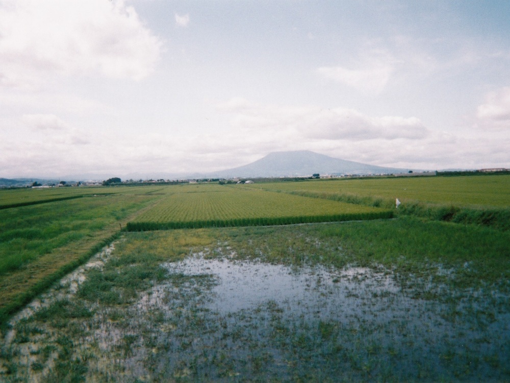 <写真2>津軽平野まで下ってきた。遠く、岩木山を望む。