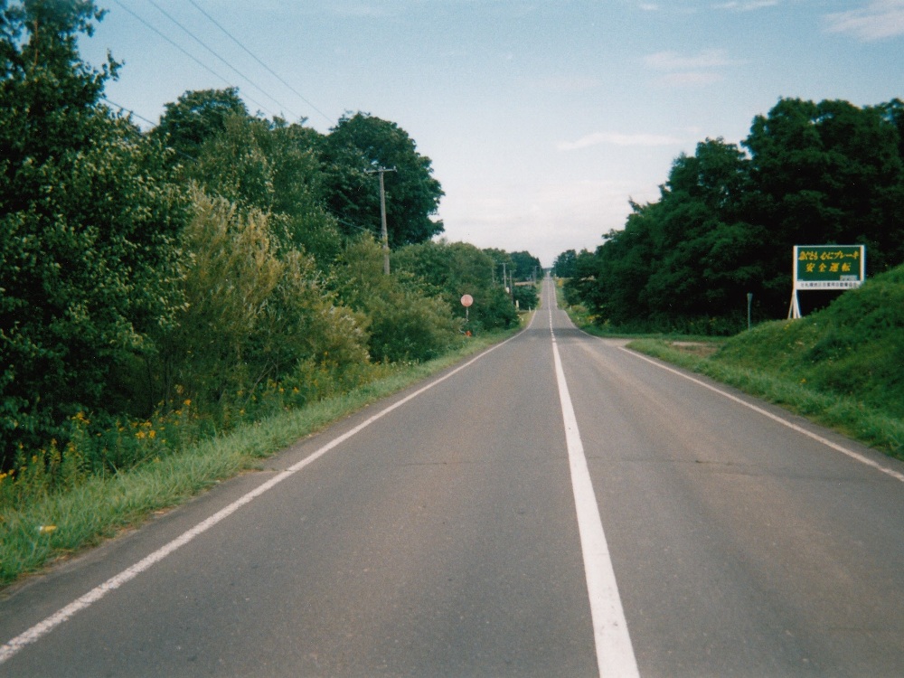 目が覚めると5:00。昨晩はさすがに爆睡だった。寒さで寝袋から出られず、二度寝。起きると6:30。行かないと。カロリーメイトを食べて下に降り、トイレで着替えて出発。昨日の道を市街地に向けて少し戻り、川を渡ってロータリーからR40へ入る。そこでついに出た! 「稚内 250km」 やっとゴールが見えた・・・!! R40を直進。通勤途中の郵便局員(・・・ではないと思うけど)と多数すれ違う。コンビニには寄らずに進む。すぐに市街地からは外れ、両サイド田畑が広がる。比布トンネルは右サイドへ。トンネルを抜けると景色が拓ける。比布町のセブンで朝飯買い、少し進んだとこの自販機の前で食う。 その先、R40は大きく左へカーブ、塩狩峠へ向う。周囲の植生はいつのまにか美しい白樺になっていた。だいぶ北まで来たことを実感。峠は一気に登る直線道路。ここまで辿り着いた今の俺にとっては余裕だった。峠を越え、一気に下る。ライダーが追い抜き様に手で合図をしてくれる。左サイドへ移り、峠を下りきると、和寒。チャリダー1人とすれ違う。直進して剣淵を通過。士別市街地では道路脇の自販機で休憩。その後また周囲は拓け、R40は大きく右へカーブし直線が続く。標識が見えてきた。よし、もう名寄・・・じゃない!多寄だ。大変紛らわしい。風連でも休憩、売店でソフトクリームを売っており、涎が出るほど食べたかったが、我慢。名寄バイパスはチャリでは通れないので、外れて農道へ。農道の入り口は誤って通り過ぎそうだったが、セブン&シェル石油で辛うじて気付く。ちなみに名寄バイパスは地図とは異なり美深方面まで延長されていた。
