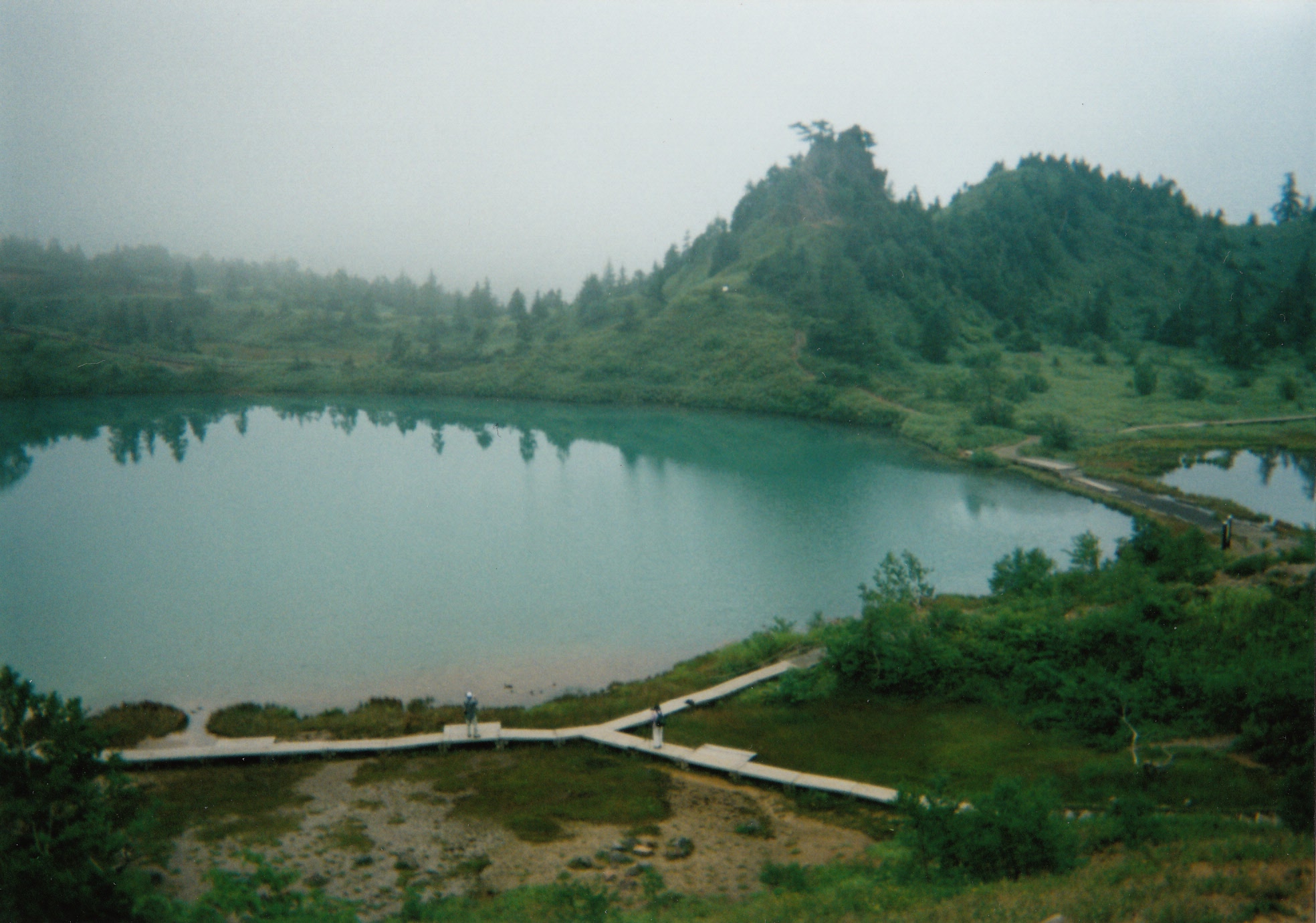 早々に出て行った。5:30起床、少し遅かったか。しっかりと腹ごしらえし、プレドニンも飲んで、草津を出発! 外はモヤってる。突き当たりのT字路のセブンでゴミを捨て、左折、R292を登り始める。T字路からすぐにあるホテルの自販機でお茶を買う。お、道路脇に牛(馬?)がいる。そしてすぐにワインディングが始まる。 草津白根山アタック開始!行くぜっ!! 朝だし、こんな険しい峠越えの道なので、全くというほど車は通らず、GOOD。が、かなり急だ、予想していたとはいえ。さっきまで走っていた道をすぐに眼下に見下ろすようになる。草津の町並みもすでに遥か下。晴れていれば遠くまで見渡せるんだろうな。「キジが降ります」などの標識もある。まさに原生林だ。まもなくスキー場も目に付くようになる。気づけば周囲の植生は白樺とクマザサに。キレイだ。いい調子でトコトコと登っていくと急に周りが開ける。森林限界を超え、高山地帯に入ったのだ。景色はますますGOOD。左脇に湿地があり、木道が備え付けられていた。スキー場のロッジも見える。周囲に人の気配はゼロ。後ろから車が来ればはるか前からその音を感じ取ることがでいる。 と、バリケード(閉じてないけど)があり、その傍らに標識が。 「これより先500m、硫化水素発生地帯につき危険。駐停車せずに通過してください」 ・・・ ・・ ・・・・・