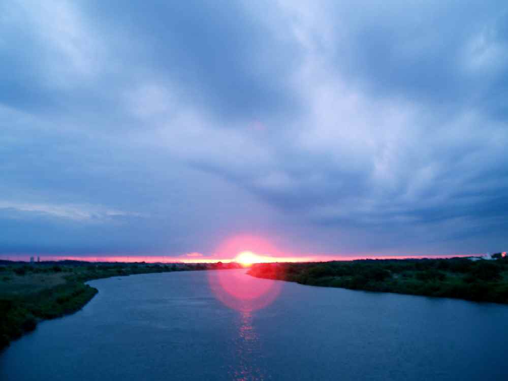 <写真5>千葉県と茨城県の県境を流れる利根川、そこに架かる橋から見た夕日。 R6に出るとひとまず都心という感じではなくなるが、まだまだ車は多い・路肩狭いの状況が続く。既に日が暮れかけていたので、まだ明るいがライトを点灯させた。かつて2回走った道、バイクの走力は(年齢を差し引いても!)当時とは比較にならないほどUPしてるハズなので、余裕で着くだろうとガンガン踏んでいく。とはいえ、到着は19時にも間に合わなそう。宿泊する旅館には「夕方頃に到着予定」と言ってあったので、電話で遅れる旨一報入れておいた。 「土浦 50km」の標識、目的地までもだいたい同じ距離だ。もう、そこまで遠くは無い。 利根川。やっと茨城県に入る。筑波山が遠くに見えてきた。目的地はあの山の麓近く。この日は曇っていたが、地平線だけ雲がなくなっており、そこに夕日があるため地平線だけが赤く染まっている状態。不思議な光景でした。思わず立ち止まって何度も写真を撮る。 利根川を渡るとグッと田舎になる。何だかんだ言って千葉と茨城は違うなと実感できた(笑)そして、寒くなってきた。ヤバイぞヤバイぞ。身体はともかく、指先は手袋が必要なんじゃないかというほど冷えてるし。 県道19から左折してつくばみらい市(旧・伊奈町)を通って行こうと思っていたが、既に暗くなっていたため、R6を直進することに。伊奈方面は街灯もなく、狭い道が多い&道が悪いので夜間にチャリで走るのは少々危険だ。牛久沼の手前はR6立体交差。残り僅か20kmだが、寒くなってきた&ハラヘリ限界のため、ここいらで夕飯。ラーメンライスで身体を暖めました。 さて、もう一っ走り。牛久駅前、R408入り口など見覚えのある場所を通過し、やっとこ学園西大通り入り口へ。ここからは速い速い!路側帯ダダっ広ろいし、車少ないし、完全フラットだし。一気に速度が上がる。 学園エリアに入ると路側帯が狭くなって、でも車は猛スピードで走っていくので怖くなり、大通りから中の道へ入る。電気街を抜け、センターを抜け、やっとこ学内へ。。。寒いし疲れてるし暗いしで、全然懐かしむ余裕もなく。ループ道路を驀進し、一の矢の先から東大通へ出る。花畑側へ渡り・・・あ、旅館の正確な場所、把握してなかったっけ。でもテキトーにほっついていたら見つかった。大通りから中に入った灯りの少ないただの住宅街、勝手知った場所じゃなかったら絶対見つけられんかっただろうな。 旅館のおじーおばーは実に温厚な雰囲気でした。若干、金の勘定がおぼつかないとこもあったけど(笑)さて、冷え切った身体を暖かい風呂でシッカリ温める。お、こんな小さな民宿なのに風呂はジャグジー付きだ!疲れた身体には最高に心地よい・・・チャリダー旅行時代を思い出すな。 |