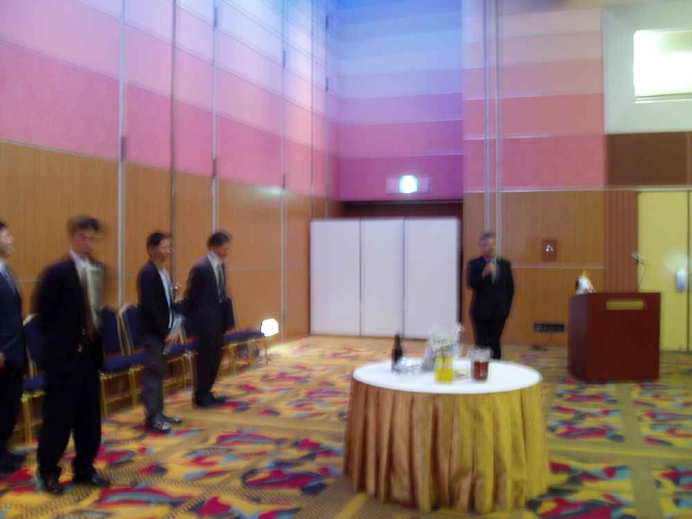 花畑から懐かしの一の矢宿舎を通って学内を縦断し、筑波センターまでテクテク歩く。半袖だったが、歩いていると汗かいてくるくらい暖かい。ちなみに「ホテルでのパーティなので、セミフォーマルな服装で」という話だったので、俺は沖縄代表として正装のかりゆし&サンダルで出席しました。