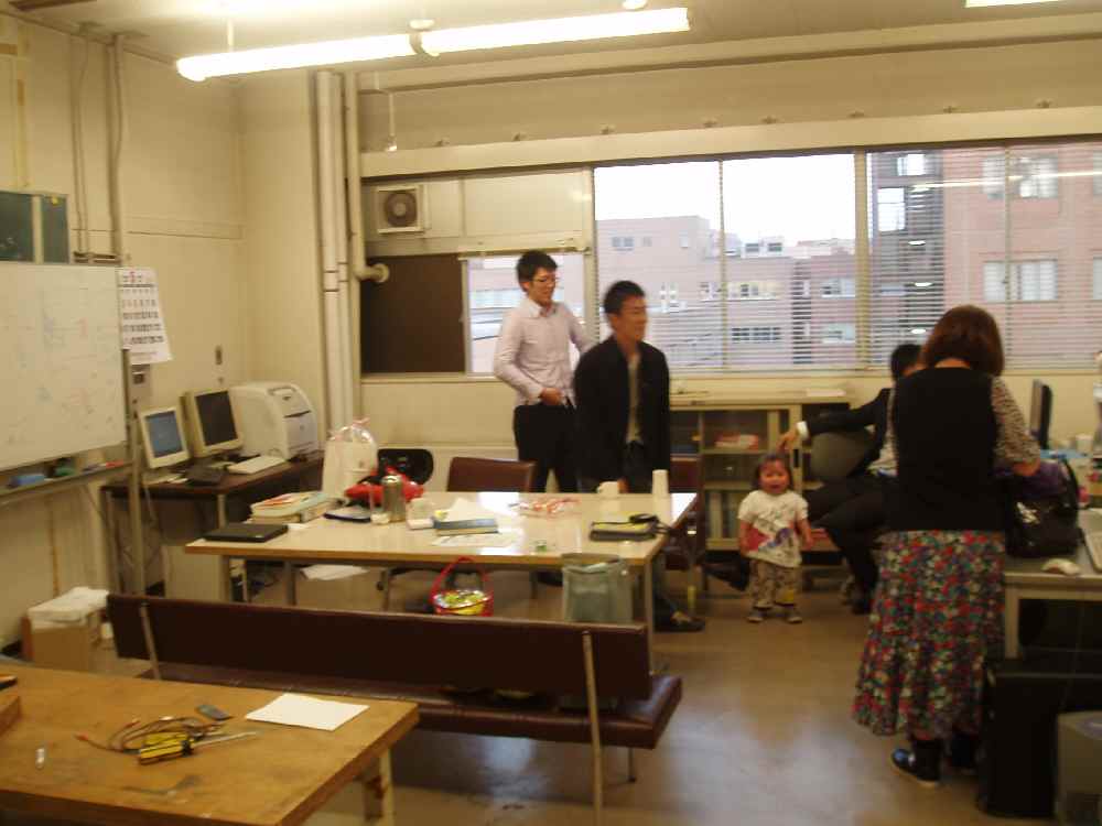 <写真4>三次会は研究室飲み。かつては隣の部屋にあったドリルなどの工作機械がこちらに置かれていて、以前より研究室っぽくなっていた。 22時過ぎたところで研究室飲み会もお開き。さすがに眠くなってきた。外に出てみると・・・さ、寒っ!半袖かりゆしウェアじゃやっぱダメか。内地の5月って記憶の中ではもっと暖かかったことになってるのだが。でもって一の矢のほうから東大通に出て宿まで歩く。歩いてるから身体の芯は温まったが、体表は冷たいまま。 運動こそしなかったが、今日一日でウォーキング10kmってとこか。宿に戻って夜また風呂に入ったが、俺以外に人の気配すらせず、怖いのなんのってもう(笑) |