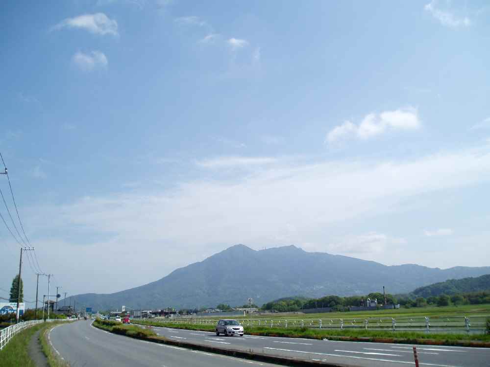 <写真1>学園東大通りから紫峰・筑波山を望む。この道、かつて練習コースとして数え切れないくらい走った。